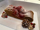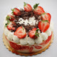 Moist chocolate cake, vanilla filling layered with cherry compote and fresh cherries. Decorated with Chantilly cream, fresh cherries and crispy pearls.  Servings: 10-12 Size : 8-inch Contain: Eggs, Dairy, Gluten