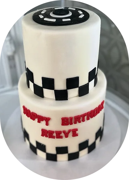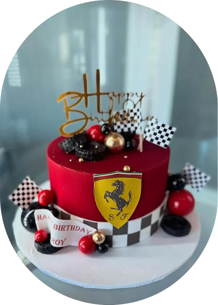 Customize your Formula 1 car birthday cake with driver names, car numbers, team colors, or a specific team theme (Red Bull, Mercedes, etc.). Add a short message or age on the cake board at checkout — we’ll hand-pipe the inscription neatly to match your design.